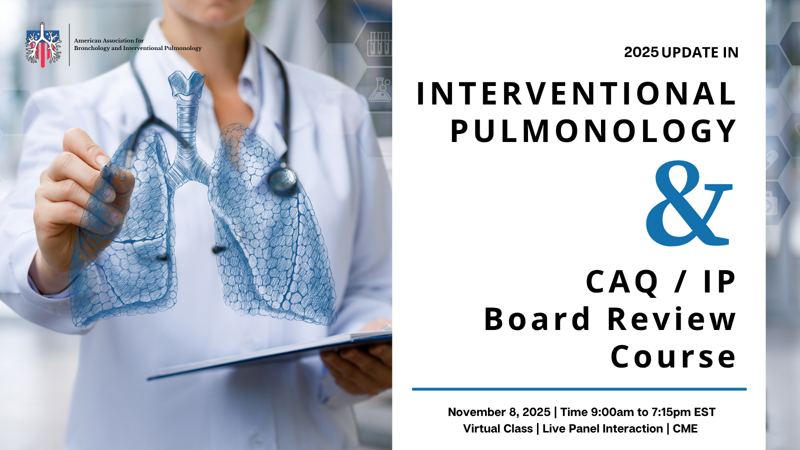 Live Activity: This activity has been planned and implemented in accordance with the accreditation requirements and policies of the Accreditation Council for Continuing Medical Education (ACCME) through the joint-providership of the Institute for International Medicine and the American Association for Bronchology and Interventional Pulmonology. The Institute for International Medicine is accredited by the Kentucky Medical Association to provide continuing medical education for physicians.
