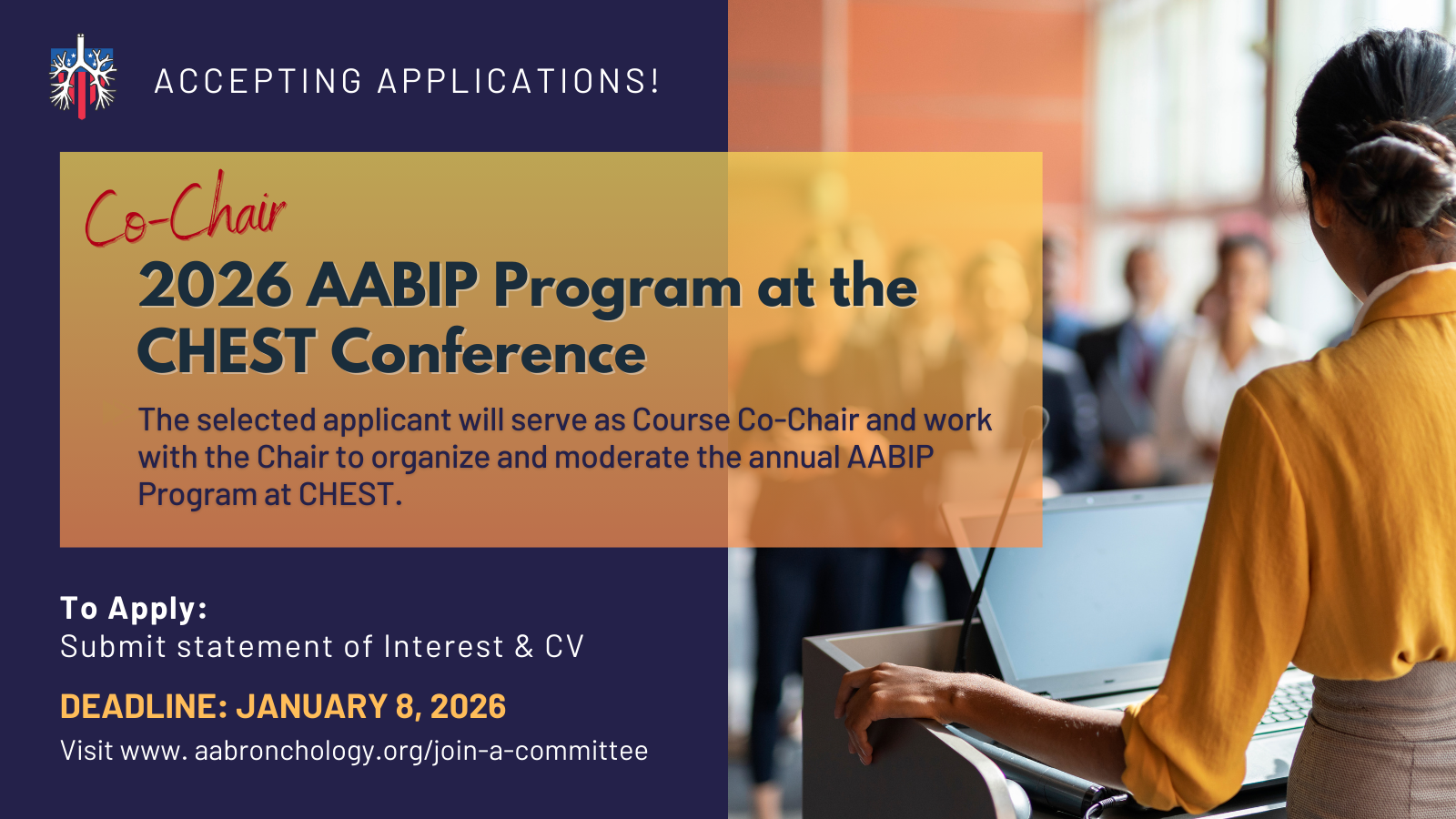 IP Fellow & Pediatric IP Representative for the DIU Committee "We recognize that there exist significant disparities in lung disease, and one key, often neglected answer is to improve representation. We need physicians who understand our patients and their unique stories. By promoting diversity, equity, inclusion, and justice, the AABIP DIU Committee is mentoring innovative and diverse young faculty, advanced practitioners, including pediatric advanced bronchoscopists and interventional pulmonologists, and working to create the leaders our patients identify with."