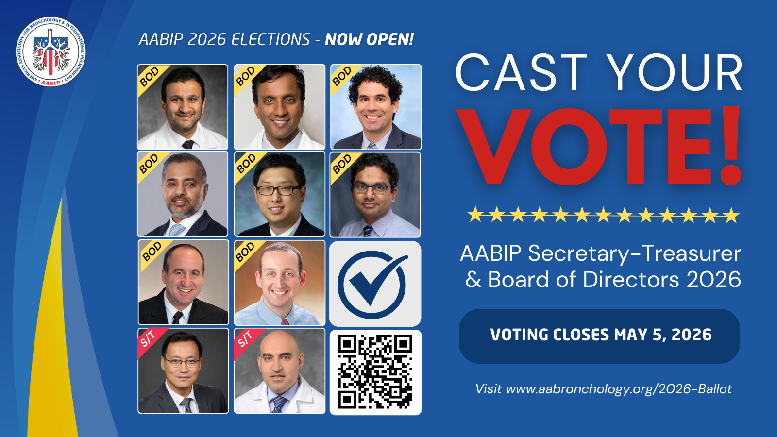 2026 AABIP Leadership Elections & Bylaws VoteAABIP members are invited to participate in the 2026 leadership elections for Secretary-Treasurer and Board of Directors and vote on proposed updates to the Association’s bylaws. To access the ballot, you must be logged in as an active voting member. Learn More + Vote >> https://aabip.memberclicks.net/2026-Ballot