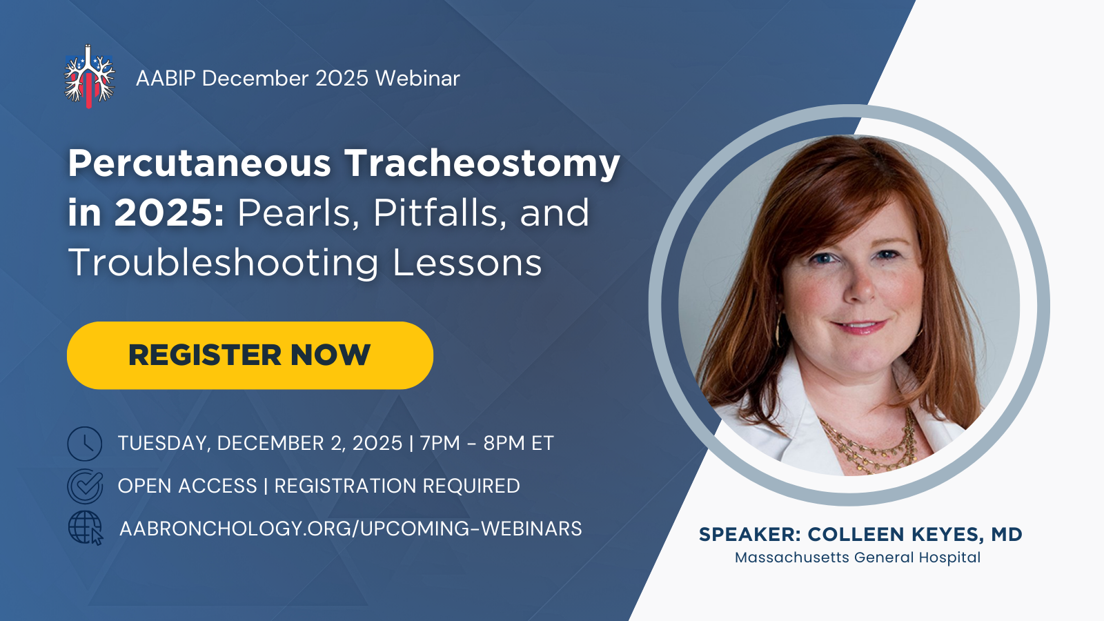 UPCOMING WEBINARSJoin us for the upcoming AABIP webinar series! See details and registration links below. Building a Comprehensive Lung Nodule ProgramMonday, October 27, 2025 | 6 PM CT / 7 PM ET | Registration Required REGISTER TODAY![]() *The live webinar is open access, membership not required, but ADVANCE REGISTRATION IS REQUIRED